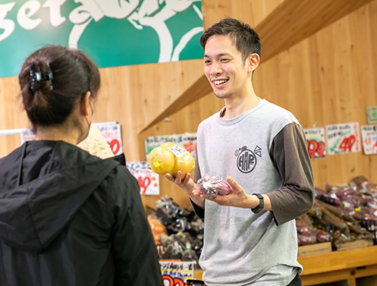 私たちは、美味しい青果を通して人々に「元気」を届けたいと考えています。お客様との対話を大切にし、「この野菜はどう調理したら美味しいの?」といった疑問に丁寧にお答えすることで、食の楽しさをお伝えしています。また、地域の薬局や店舗様と連携し、通常は青果を扱わない場所でも気軽に新鮮な野菜や果物を購入できる機会を創出しています。これにより、店舗全体の活性化にも貢献し、お客様と地域社会の両方にハッピーを届ける八百屋を目指しています。